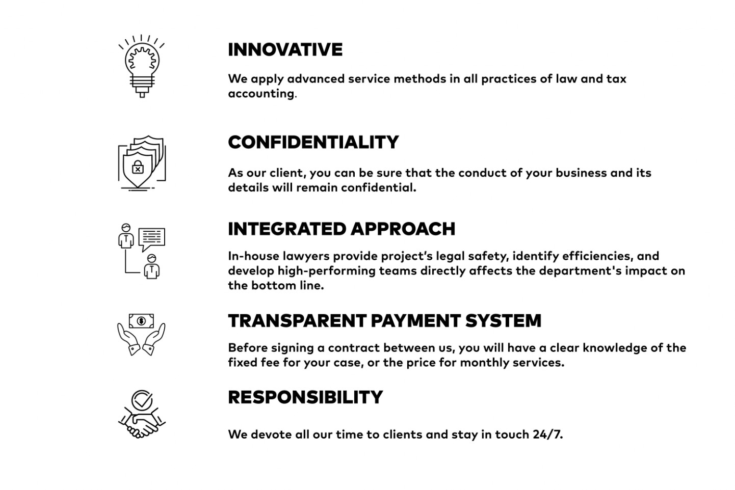 We cooperate with large local and international companies operating in fields such as wholesale and retail trade, tobacco industry, information technology and cybersecurity, pharmacy, real estate, education, etc. and provide them with top-quality legal and tax services.
