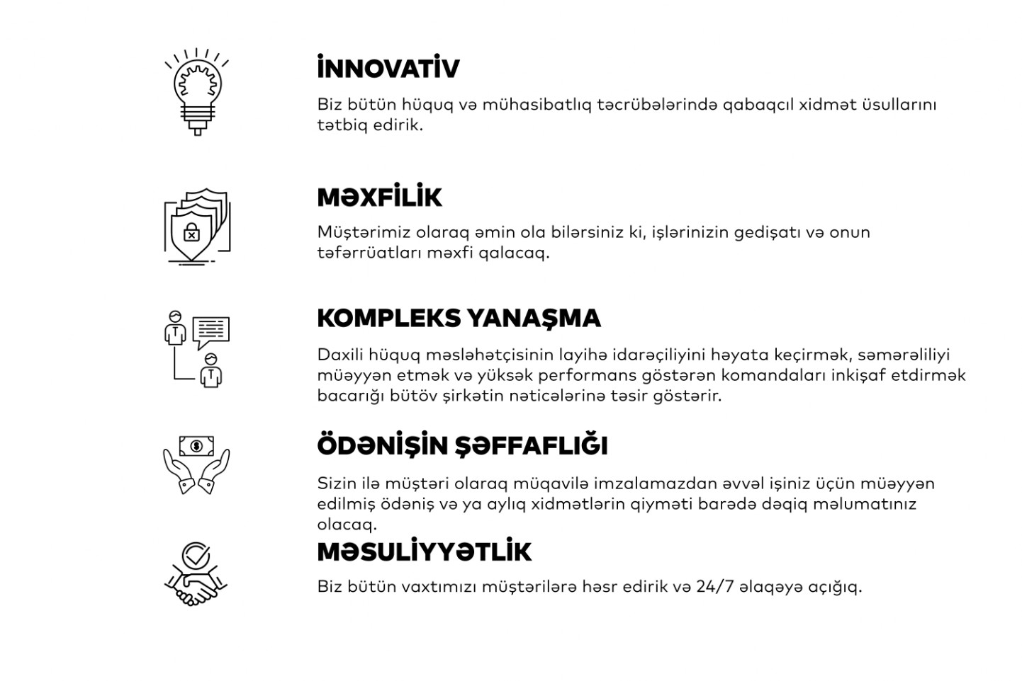 - Missiyamız, işinizi hüquqi cəhətdən təhlükəsiz saxlamaqdır.